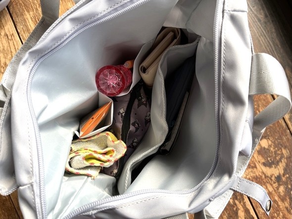 メインポケットは容量が大きく、お財布やポーチなどお出かけに必要なものが入ります。