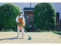 ヘッドの角度も5段階調整に対応しており、先端を垂直に立てて使えば、壁際や縁石などに生えた細かな草にもアプローチできそうです。別売りのバッテリーに充電してから使う製品で、無負荷時の連続運転時間は約45分となっています。