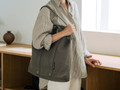 本体サイズは約32.4(縦)×43.5(横)×21(マチ)cm。ワインボトルやバケットがすっぽり収まるサイズ感で、日常の買い物はもちろん、少し荷物が多い日にも活躍します。