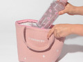 コットン生地の柔らかな風合いと、優しいピンクとグレーを基調にした色合いで、普段のスタイルに取り入れやすいのもポイント。サイズは約39.8(縦)×40.5(横)×10.5(マチ)cmで、ノートパソコンや雑誌、お弁当箱や水筒など幅広いアイテムを収納できます。価格は3000円です。