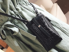 3COINSの高級感ある「クロコ柄スマホショルダー」はお財布としても使えて便利! ボタンもファスナーも付いて優秀な収納力!