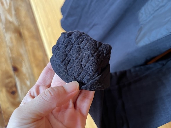 さっそく本商品を着用してみると、確かに暖かい。その秘密は裏地にありそうです。