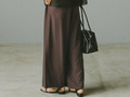 スリムなシルエットながら、脚のラインを拾いにくい素材感でピタッと張り付きすぎず、自然な美脚を演出。ハリのある綿サテンがすっきりと上品に見せてくれるのもポイントです。