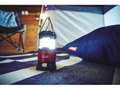円柱型のランタンらしいフォルムをしたモデル。キャンプなどのアウトドアシーンになじみやすい電球色の柔らかい明かりで周囲を照らします。
