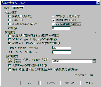 クエリアナライザのメニューから[クエリ]−[現在の接続オプション]を選択したときに表示される[現在の接続オプション]ダイアログボックスの[全般]パネルには,[時間経過を表示]オプションと[I/O統計情報を表示]オプションが用意されている。これらのオプションを指定してトレース情報を取得することにより,実行されたクエリのリソース使用状況を知ることができる。それによって,プロセッサのリソースを多量に消費するのか,ディスクI/O回数が多いのか判断することができる。また,クエリのチューニング効果を観察するときにも,これらのオプションは活用できる。