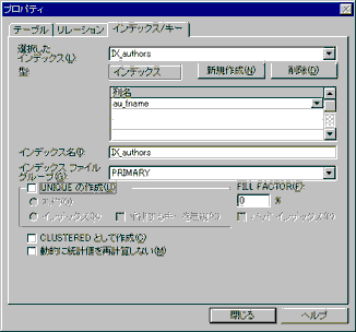 統計情報を自動更新するか否かは,SQL Server Enterprise Managerのテーブルデザイン画面からも設定できる。テーブルデザイン画面で任意の列を右クリックすると表示されるメニューから[プロパティ]を選択し,表示された[プロパティ]ダイアログボックスの[インデックス/キー]パネルを開いて[動的に統計値を再計算しない]オプションの状態を確認する。このオプションがチェックされている場合には,統計情報は自動更新されない。自動更新させたい場合には,チェックを解除して[閉じる]ボタンを押す。