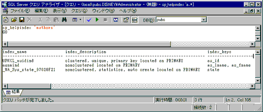 Fig.9-34 sp_helpindexシステムストアドプロシージャの実行例