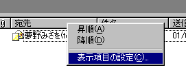 容量が表示されない場合には,「宛先」などのタイトルバー部分で右クリックし,「表示項目の設定(C)」を選択する