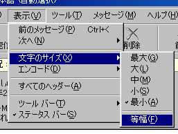 変更したいメール(メッセージ)を表示させて「表示(V)」→「文字のサイズ(X)」→「等倍(F)」を選択しよう