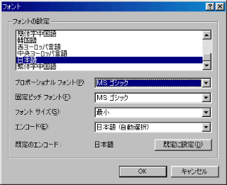 「プロポーショナルフォント(P)」を「固定ピッチフォント(F)」と同じフォントに設定し,「OK」をクリックすれば設定完了だ。これ以降は,常に等倍フォントで表示されるようになる