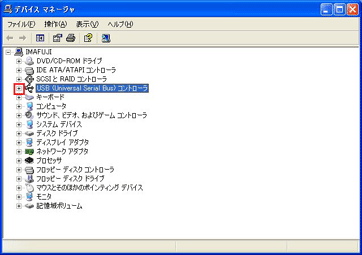 「USBコントローラ」と表示されている左側の「+」記号をクリックして、デバイスを表示させる