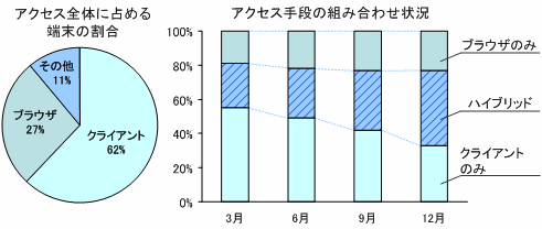 クライアントをハイブリッド構成にしている場合、想定される状況とのギャップや、時系列での変化の度合いを把握しておくべきであろう。将来的にクライアントを残すのかどうかを判断する際に、重要な指標となる。