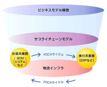 「計画・実行・チェック」とは、SCMを運用するためのマネジメントサイクルであり、それ以前に「サプライチェーンにおける販売・在庫・生産・調達・輸送を自社ではどうマネージしていくのか」を明確に把握しておかなければ、SCMも、SCMシステムも成功しないのです。