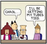 “get (one's) tubes tied”という表現は、いわゆる男性でいうパイプカット、女性の場合は卵管を縛る避妊術のことですが、いくらオープンなアメリカでも職場の会議で飛び出していい言葉ではないでしょう。ここでは、ボスに対する抵抗としてキャロルが使ったと理解した方がいいでしょう。
