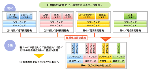 サーバ集約化が貢献するのは環境面ばかりではない。和光データセンターは6階建てであり、4階までマシン室となっているが、「システム機能を拡張しても、5階以上をマシン室にする必要がなくなる。これにより3億円の工事・移設費用を節約できる」。こうした取り組みに対する投資コストについて、具体的な数値は公表していないが、2011年までの3カ年で回収できる見込みだという。