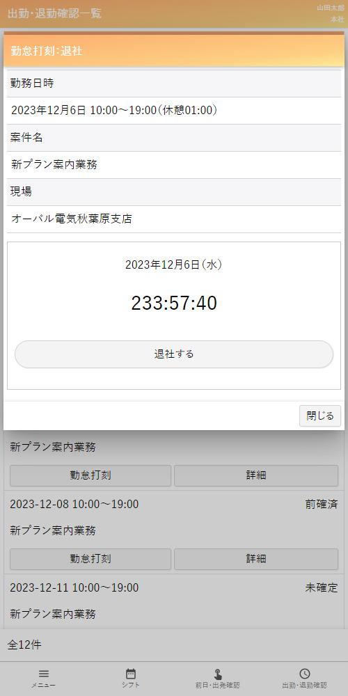 - 出勤・退勤管理