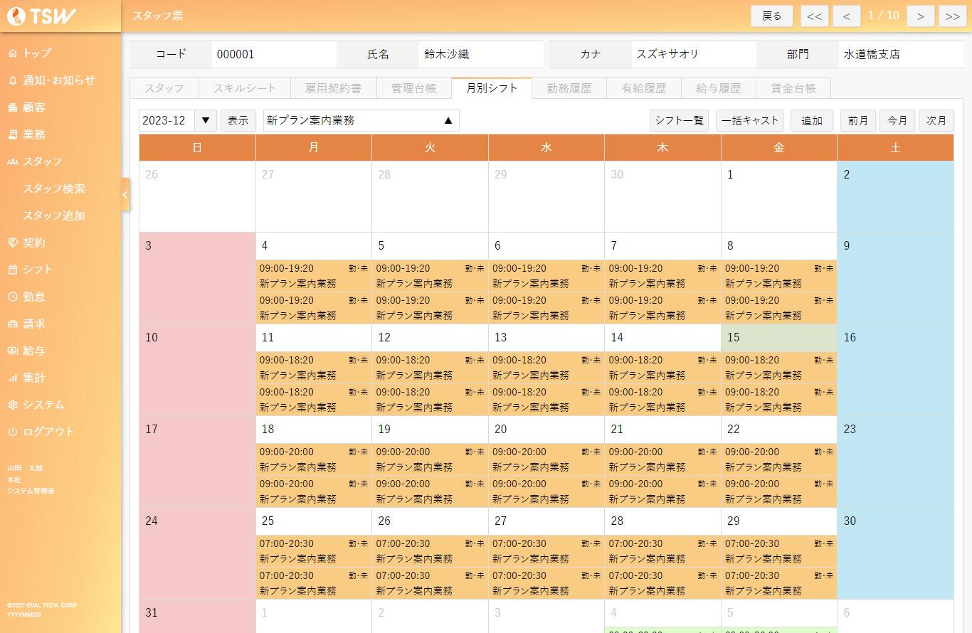 アルバイト管理、スタッフ管理の機能を網羅した総合パッケージ