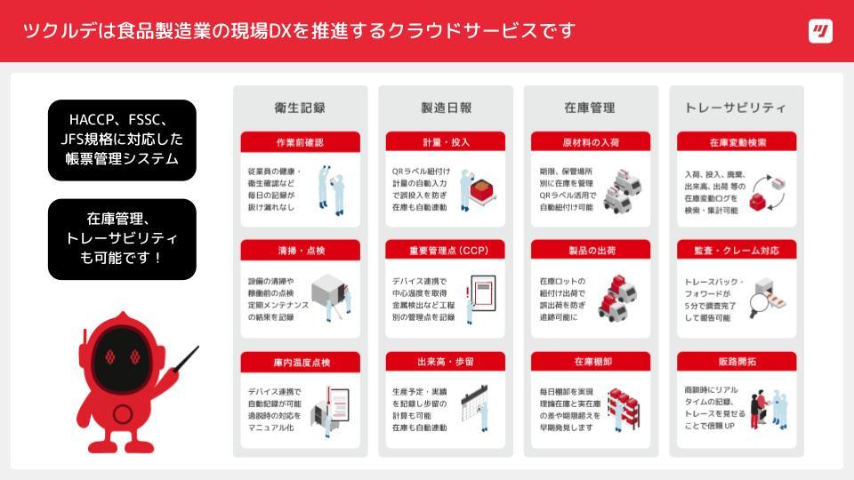ツクルデは食品製造業の現場DXを推進するクラウドサービスです