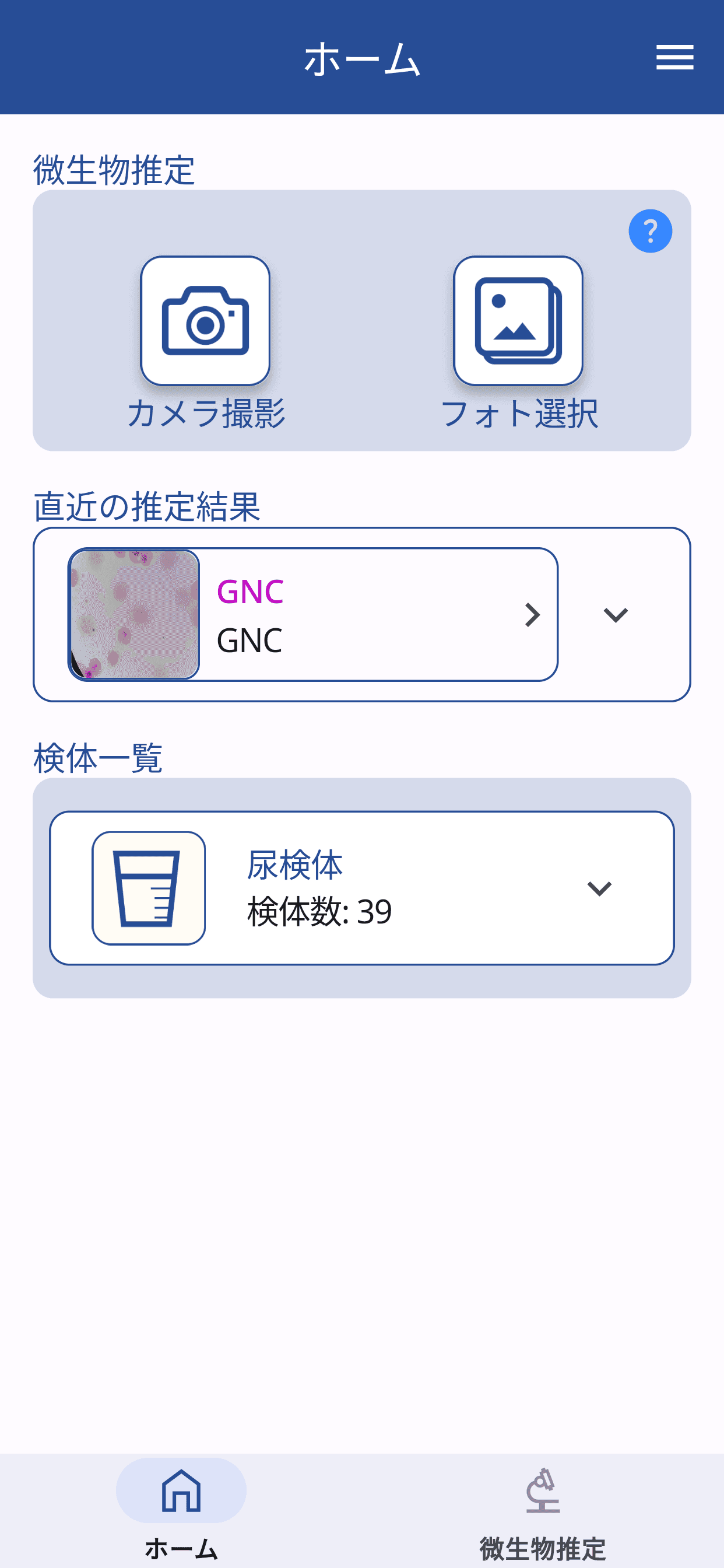 10秒で菌種推定結果表示。スマホのカメラ・フォト機能が使えます