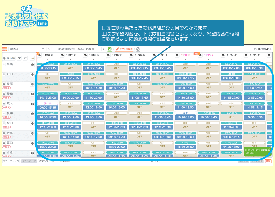 勤務シフト作成お助けマンTime_タイムスケジュール