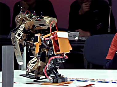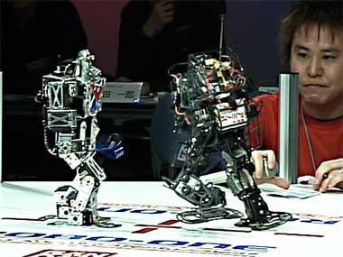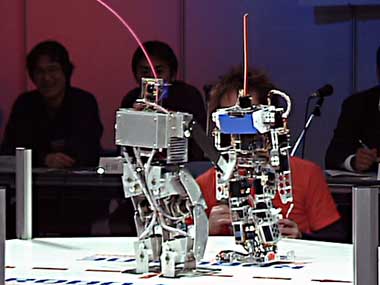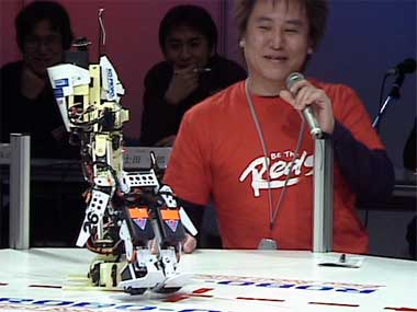 テコンドーロボットTAEKWON-Vに対するは、身長30センチで1.4キロ以下という軽さを誇るMAGIだ。ほとんど身長の変わらないTAEKWON-Vは2.3キロだから、かなり軽いのだ。しかし、そのMAGI、調整が不調だったのか、いきなり自分で3回続いて転んでしまう。TAEKWON-Vは何もしないうちに勝ってしまった。