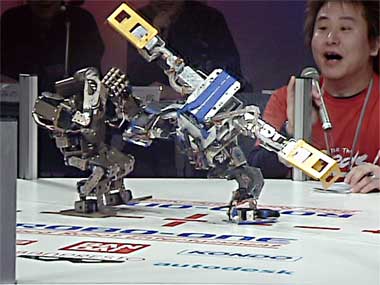 首で攻撃をしかける恐竜Ultra-Chopperを、HS-WR-03''は手で受け止める。30秒、HS-WR-03''が、相手を手で引き倒すような形で倒す。Ultra-Chopperは起き上がれずノックアウト。予選ではちゃんと起きていたのになぜ? と思ったら、起き上がりにくい向きに倒れてしまったのだそうだ。