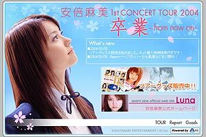 3月1日に高校の卒業式を終え、本格的に芸能活動に専念することになった安倍麻美。制服での会見も記憶に新しい彼女が、3月19日の名古屋・クラブダイアモンドホールを皮切りに、21日の大阪・なんばHatch、28日の東京・東京厚生年金会館と三大都市で初のコンサートツアーを開催する。AIIはツアー開始に先立ち、3月5日(金)、コンサートツアー専用Webサイト『安倍麻美 1st CONCERT TOUR 2004「卒業」』をオープンした。