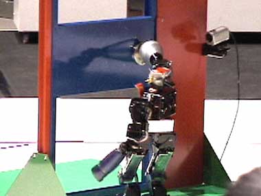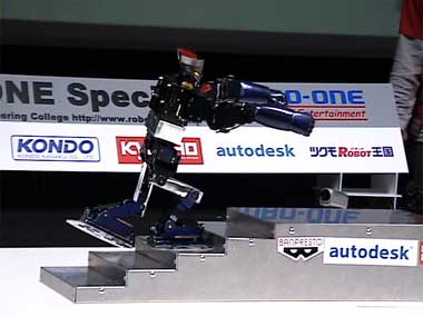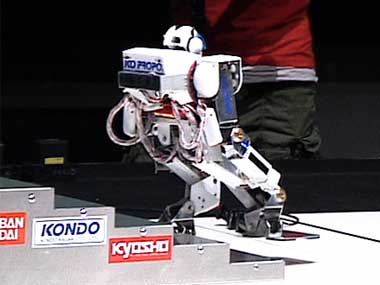 彼も、ARIUS2同様、人間型階段上りを見せてくれた。そういえば、この2つは片足屈伸ができるロボットだ。人間上りにはあれが必要なのだろうか(*3)。