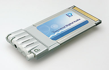 受信機には、チューナーと1セグメント/3セグメント対応地上デジタル音声放送用OFDM復調LSIとCardBus用インタフェースを内蔵した。