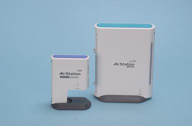 イーサネットコンバータWLI2-TX1-G54(左)とWHR3-AG54(右)。WHR3-AG54よりもさらにコンパクトだ。HDDレコーダやゲーム機などを無線LANに参加させることができる。AOSSボタンも装備WLI2-TX1-G54のような子機の場合、必ずしもPCから使用するとは限らないので、設定はPCのブラウザから行うわけにもいかない。AOSSの真価はこのような場面でいっそう発揮される。