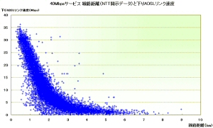 これは、3月23日時点でリンクアップされていた40Mbpsサービスの約15,000回線を無作為に抽出。NTTの線路情報と照らし合わせて算出された数字だ。
