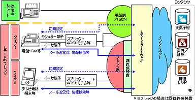 Lモードは、専用固定電話からメール送受信や情報検索などが可能なインターネットサービス。従来はISDN回線で接続していたが、フレッツ回線を利用することで、高速な定額接続が可能になる。