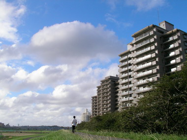 多摩川の河原にてマンション群と空を撮影。ISO100で撮ってしまったせいもあって暗部のノイズやディテールの描写力は気になるが、発色はすごく爽やかでキレイ。サンヨーらしいテイストだ(オリジナル画像はこちら)Copyright © ITmedia, Inc. All Rights Reserved.