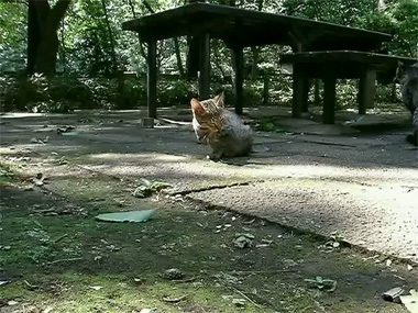 手ブレ補正なし、ノイズリダクションなしで生後数カ月の野良猫をTV-SHQモードで撮影。森の中で結構暗いためAFが遅いが、明るいところではもうちょっと素早く合う(オリジナル映像はこちら。QuickTime Playerで再生できます)