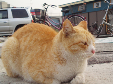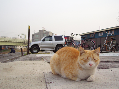 河原でくつろいでいる猫をワイド端とテレ端で撮影。2倍ズームでもここまで近寄れるのである。このくらいの距離に被写体があるとかなり爽やかにきれいに撮れる。メリハリがいまひとつなのは曇天下のためだ