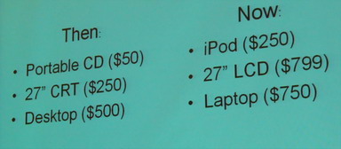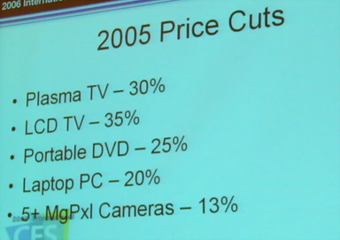 2004年第2四半期から2005年第3四半期までの間に卸価格が8.6%上昇しているが、これは人気のあるカテゴリーの製品が従来の「ポータブルCDプレーヤー」「27インチCRTテレビ」「デスクトップPC」から、それぞれ「iPod」「27インチLCDテレビ」「ラップトップPC」に移行したのに伴って製品価格が上昇しているため。