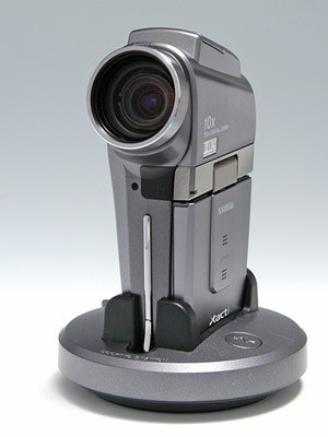 本体には円形のクレードルや赤外線リモコンなど、豊富なアクセサリが付属する。本体前面にリモコン受光部があるので、赤外線リモコンを使った撮影もできるし、クレードルにセットしてテレビにつないだときのリモコンとしても利用可能だ。