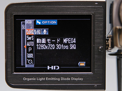 まずボディが大きくなったけれども、その分グリップしやすく安定感が出てきた。これはいい。ただ、HDムービーを撮るときは注意。640×480が1280×720になったことで、ちょっとした細かい手ブレやピンボケがすごく目立つようになったのだ。静止画にしろ動画にしろ、画像サイズがでかくなると今までは目立たなかったブレが見えてくるってことなので、DMX-HD1が悪いわけじゃない。