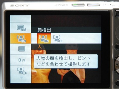 そんな中で、新機能が「顔認識」。オート時とポートレートモードでは「顔認識機能」(同社の表現では「顔キメ」)を使うことができる。