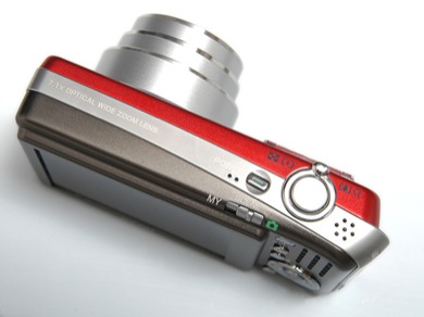 前モデルでは背面に縦に並んでいたズームキーが、シャッターボタン周りに移動し、背面に親指を置くスペースができたのが一番の特徴だろう。2.7インチと液晶モニターを大きくしながら窮屈な感じはしない。電源スイッチの位置がレリーズボタンと入れ替わったのも誤操作が減ってよい。