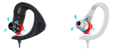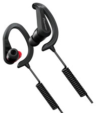 イヤーハンガー部とカナル型インナー部の接合部にボールジョイントを組み込み、耳の形状や耳穴の角度に合わせて可動する「アクティブフィット構造」を採用、装着時の安定性を高めたスポーツイヤフォン。IPX 2の防滴仕様、頭の後ろで束ねる装着スタイルを合わせ、激しい運動中でも音楽を楽しめるという。