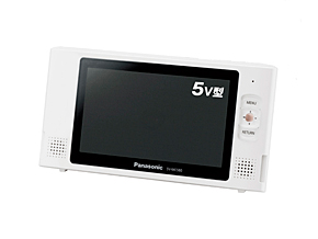 5V型の液晶パネル(480×272ピクセル)とステレオスピーカーを搭載したワンセグテレビ。IPX6/7の防水仕様(防噴流、浸水)のため、お風呂やキッチンといった水回りでも安心して利用できる。設置したときの最大外形寸法は、178.8(幅)×93(高さ)×45.1(奥行き)ミリ。