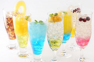 ドリンク類。シェリル「わたしのドリンクで銀河を震わせてみせるんだから!」(620円)。ミシェル&クラン「酔うのが怖くて酒が飲めるかあぁぁぁ〜!」(680円)など、キャラクターをイメージしたドリンクが勢ぞろい。ノンアルコールも用意しているオリジナルメニューは、ミシェル&クランをイメージしたアルコール飲料「酔うのが怖くて酒が飲めるかあぁぁぁ〜!」や、「フォッカー柿崎丼(Wフラグを回避せよ)」など、キャラクターにフィーチャーしたものを多くそろえた。また軽食には、ランカ・リーの「スターライト納豆」にちなんだ「スターライト納豆パフェ」や「スターライト納豆ドッグ」をラインアップ。食事からパーティーの罰ゲームまで幅広く対応する。キャンペーン期間は5月6日まで。
