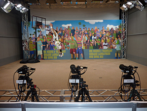 麻倉氏:スーパーハイビジョン、Hybridcastに続く3つめのトレンドとして、番組の映像に新しい表現が出てくることを挙げたいと思います。例えば多視点ロボットカメラシステムは、9台のロボットカメラが1つの被写体に向かうように強調操作を行い、スポーツのゴールシーンなど決定的瞬間を“時間と止めた状態で視点が被写体の周囲を回り込む”映像表現が行えます。映画「マトリックス」で主人公が弾丸を避けるシーンを思い浮かべると分かりやすいですね。NHKでは「ぐるっとビジョン」と名付けています。