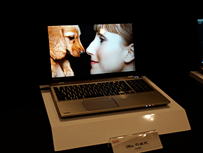 同時に参考出展されていた東芝の4Kディスプレイ搭載ノートPC。これまで4K出力に対応したノートPCはあったが、4Kディスプレイを搭載したノートPCは初だ。一般向け(左)とワークステーション向け(右)の2種類があり、とくに後者は「CADなどのプロフェッショナル用途で求められていたスペックを満たす提案型の戦略商品」とのことで、同社のノートPC戦略上非常に大きな意味を持っているという