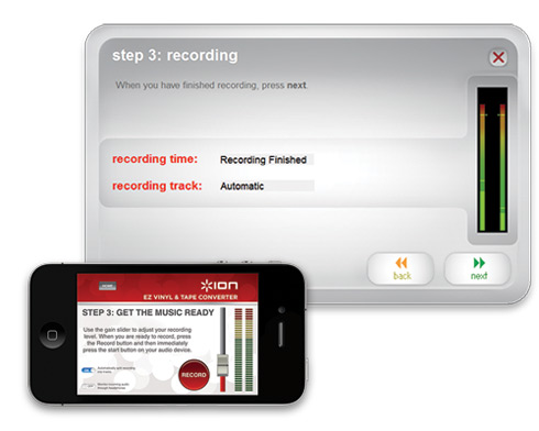 PCとUSBケーブルで接続してレコード音源をデジタル音楽ファイルへと変換することもできる。付属ソフトウェアの「EZ Vinyl & Tape Converter software」(PC/Mac対応)は、トラックごとに自動的にファイル分割する機能を備え、手間なくデジタル化が可能だ。またiOS版の「EZ Vinyl & Tape Converter software」も用意。AppStoreから無料でダウンロードできる。