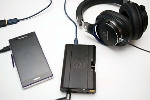 MP3など低解像度の圧縮音源をDSD形式で再生できるアプリの機能も楽しめた。試しに使ってみると、ディティールがより緻密に描かれるようになり、奥行き方向の立体感が高まる。ボーカルは声のエッジの硬さが和らいで、ふくよかさが増してくる。その差を明確に聴き分けられるのも「AT-PHA100」のバックアップがあってこそ。ヘッドフォン単体で聴くよりも音楽の表情が彩りを増すので楽しく聴ける。