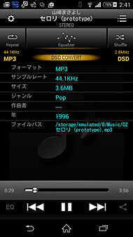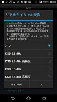 今回はハイレゾ対応の「Xperia Z2」に、アップデートした「HF Player for Android」の組み合わせで試聴した。iOS/Androidともに有償版HDプレーヤーパックとして提供される「リアルタイムDSD変換」を含むハイレゾ再生機能が1000円を追加で支払えばアンロックされて使えるようになる。