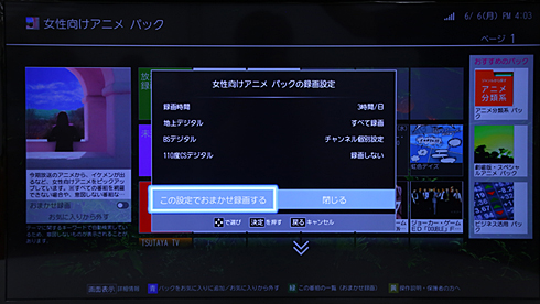 さらに「おまかせ録画」のチェックを入れておくと、2番組同時録画の範囲で自動的に録画までしてくれる。パックの登録さえすれば、録画予約の手間も減る。