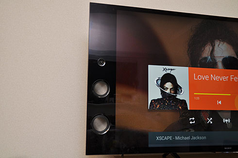 ブラビアではGoogleの音楽配信サービス「Google Playミュージック」が利用できてうれしい。同サービスに登録しているユーザーであれば、外出先はスマホで、宅内ではテレビで聴き放題の定額制音楽配信サービスがスマートに楽しめる。とくにハイレゾ対応スピーカーと、さまざまな音源をハイレゾ相当の良い音にアップスケールする「DSEE HX」の効果は目覚ましく、X9350Dシリーズさえあれば、もうリビングに専用のオーディオシステムは要らないのではと感じるほど。テレビの電源を立ち上げてオーディオシステムを生かしたまま、画面だけを「消画」できる機能も便利だ。